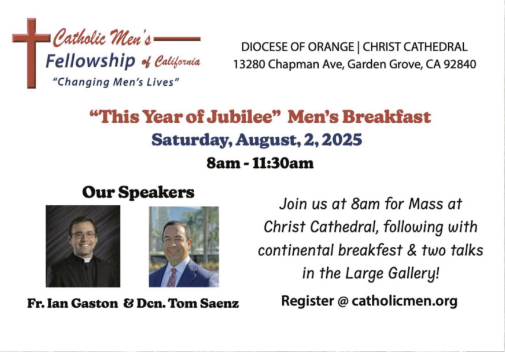 “This Year of Jubilee” Men’s Breakfast – Catholic Men’s Fellowship of California